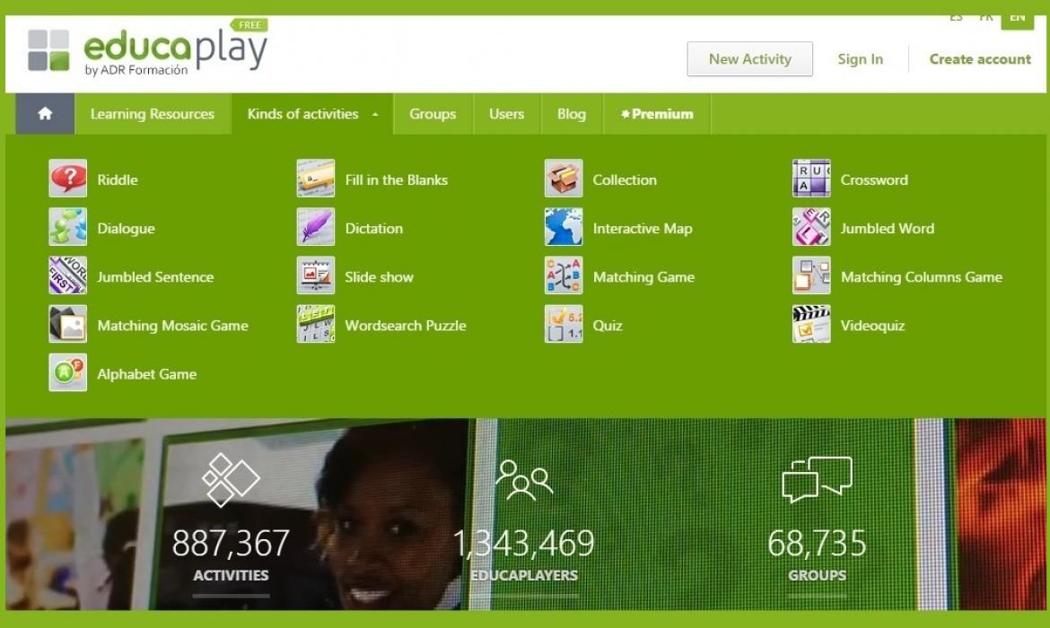 Educa play platforma nudi mogućnost kreiranja raznovrsnih aktivnosti poput interaktivnih karti, kvizova, dopunjavanja praznina, zagonetki, križaljki, osmosmjerki i tako dalje, a sve to možete vidjeti kada odete na stranicu „Vrste aktivnosti“ – Kinds of activities.