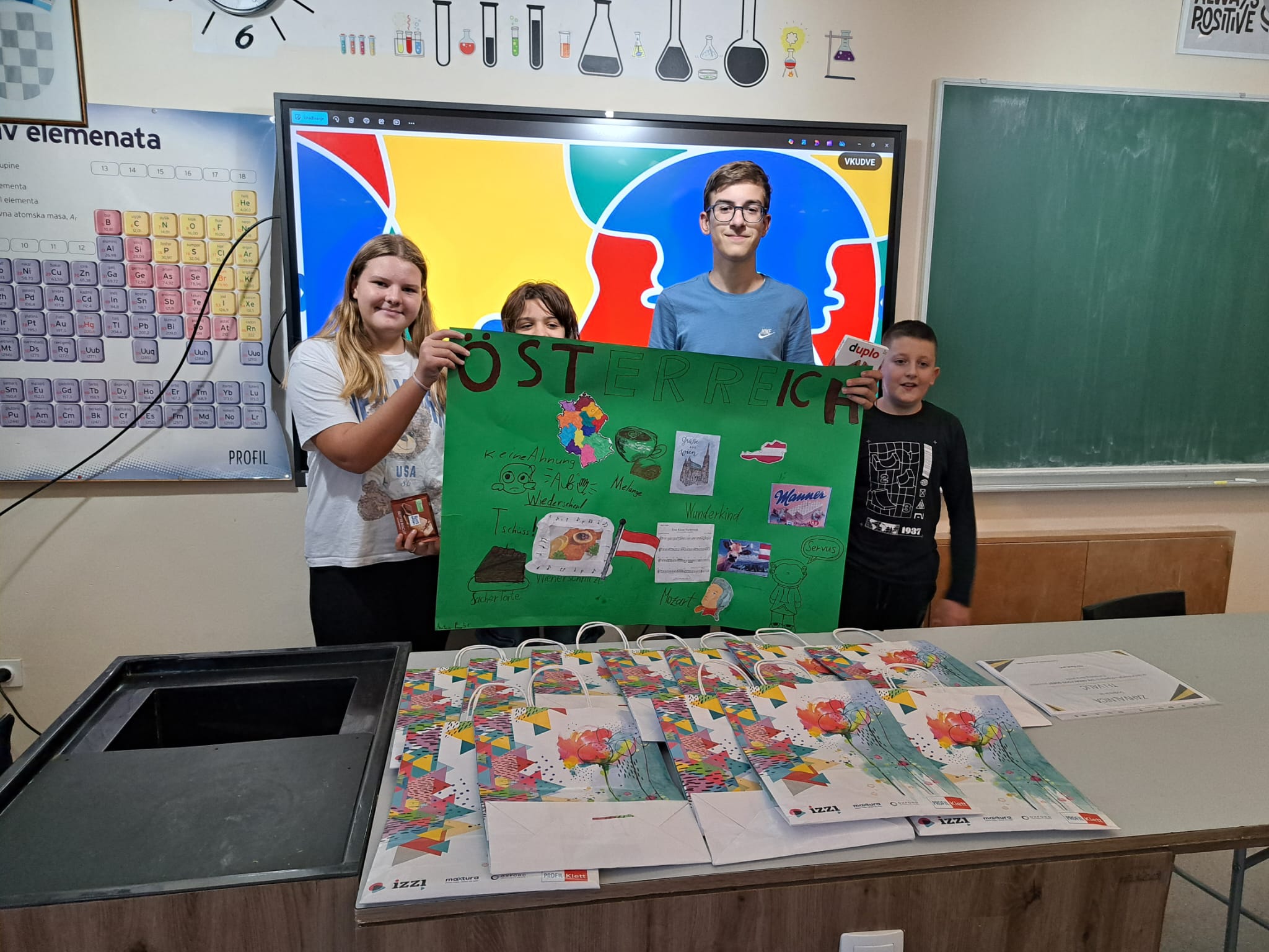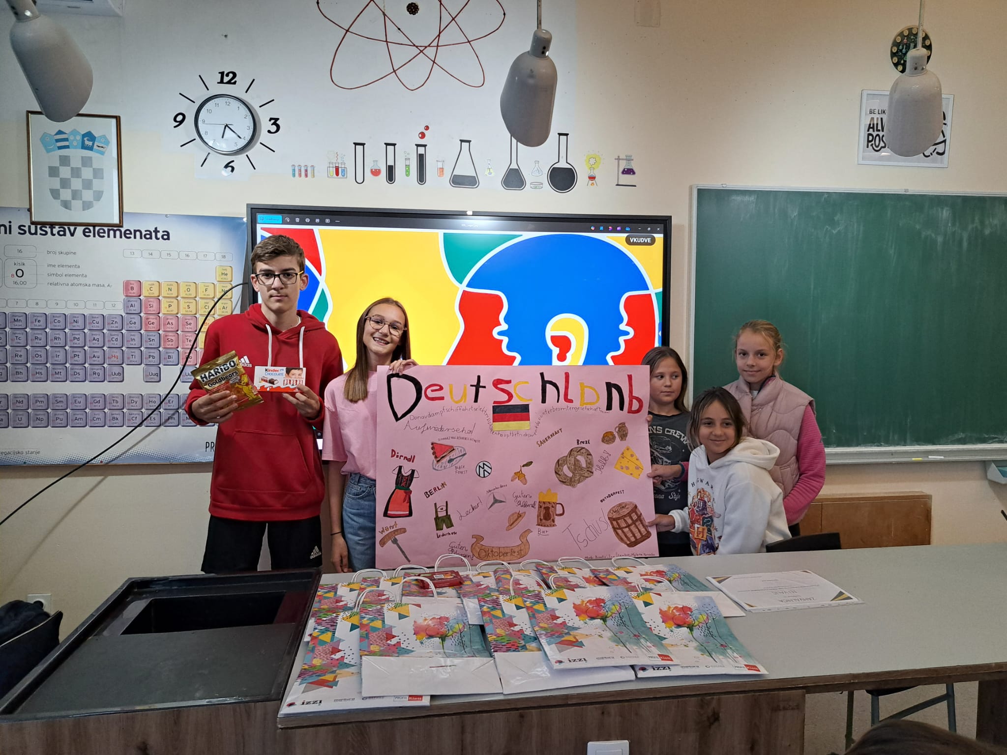 Nakon predstavljanja plakata uslijedio je kviz općeg znanja na temu jezika, zemalja i hrane. Učenici su kroz zabavna pitanja pokazali izvrsno znanje, surađivali u timovima i međusobno se poticali. U veselom natjecateljskom duhu svi su se odlično zabavili i mnogo naučili.
