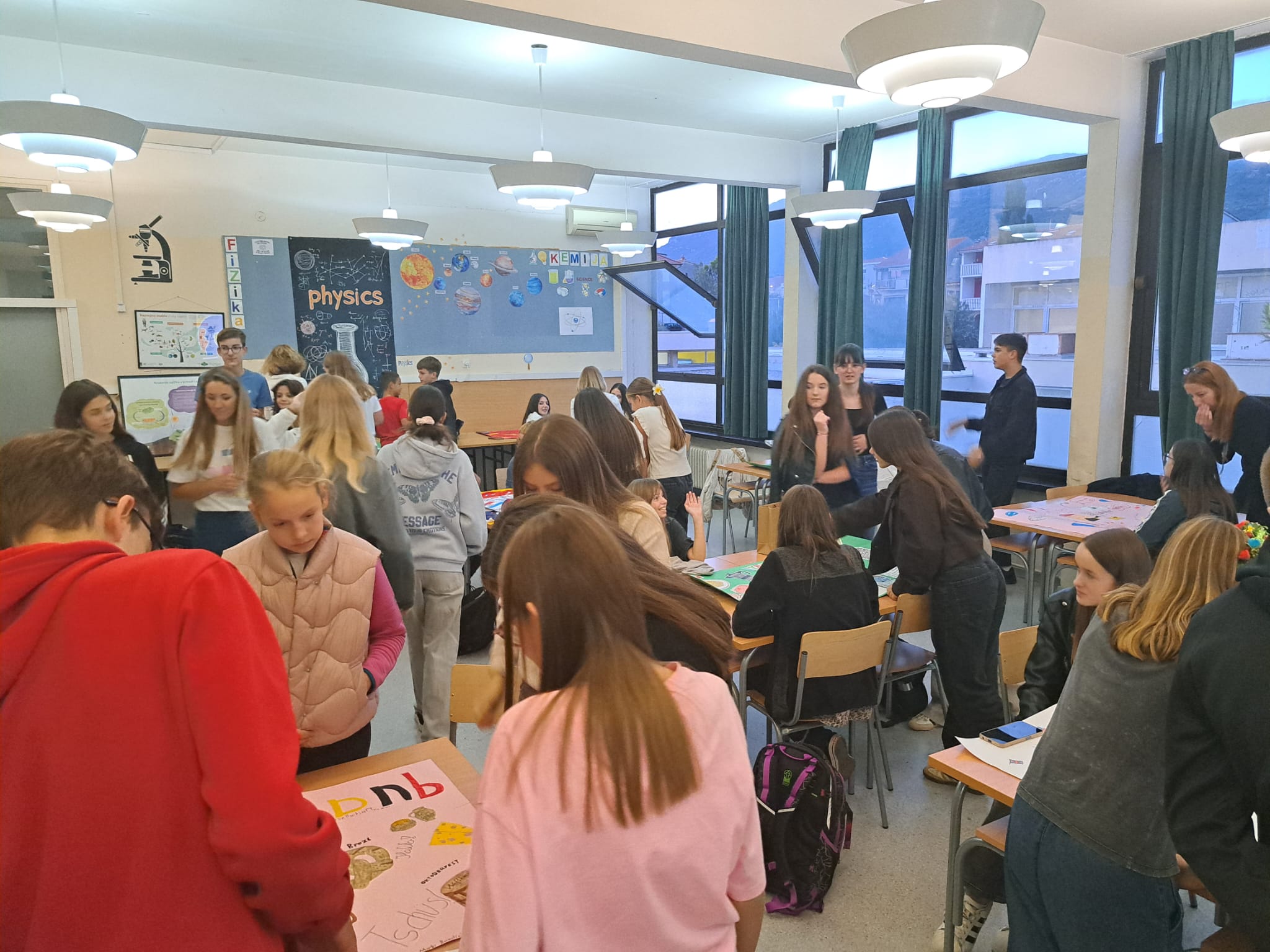 Učenici su pokazali iznimnu kreativnost i entuzijazam u izradi plakata i prezentacija na kojima su prikazali nacionalna jela, izraze vezane uz hranu, kao i osnovne riječi i pozdrave na jeziku zemlje koju su predstavljali. Učionice su bile ispunjene zastavama, ilustracijama, receptima i fotografijama – pretvorene u pravu kulturno-kulinarsku kartu svijeta.