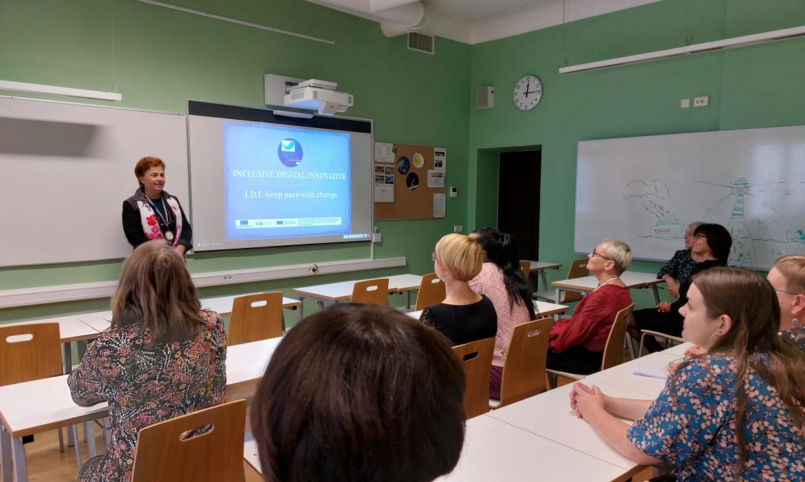 Prvi školski sat nastavnici su imali estonski jezik. Dobili su zadatak napisati pjesmu o jednom maturalnom razredu na temelju zadanih riječi. Drugi školski sat su imali umjetnost gdje su dobili ime kolege i jednu aktivnost koju su morali nacrtati. Treći školski sat imali su nastavu TZK- a na kojoj su uz pomoć instruktora aerobika učili plesnu koreografiju. Četvrti školski sat bio je SRO na kojem je nastavnica Jelavić održala prezentaciju o svojoj školi, Omišu, Hrvatskoj te predstavila Erasmus+ KA1 projekt I.D.I. u korak s vremenom u sklopu kojeg se navedena aktivnost job shadowinga i održala.