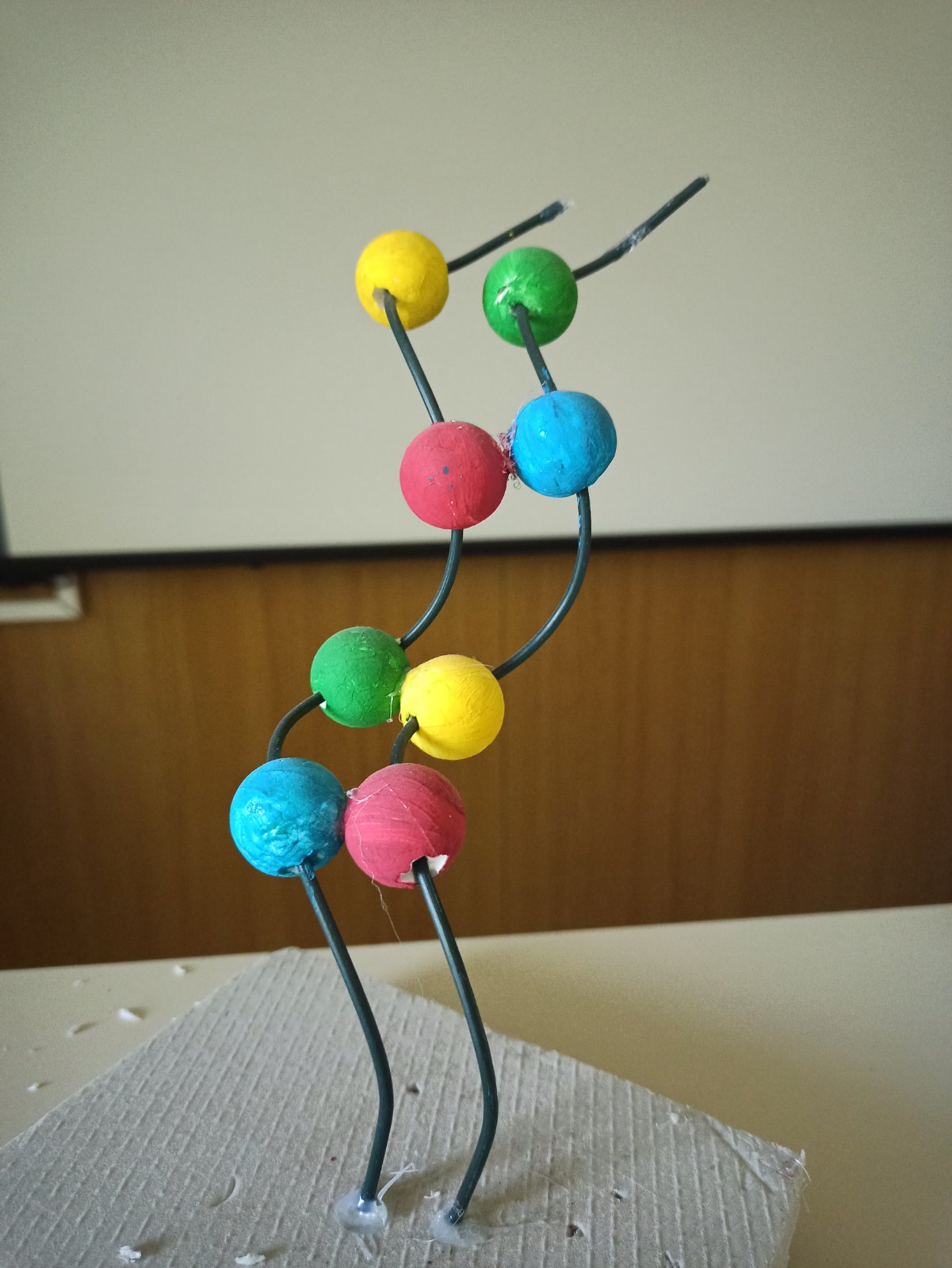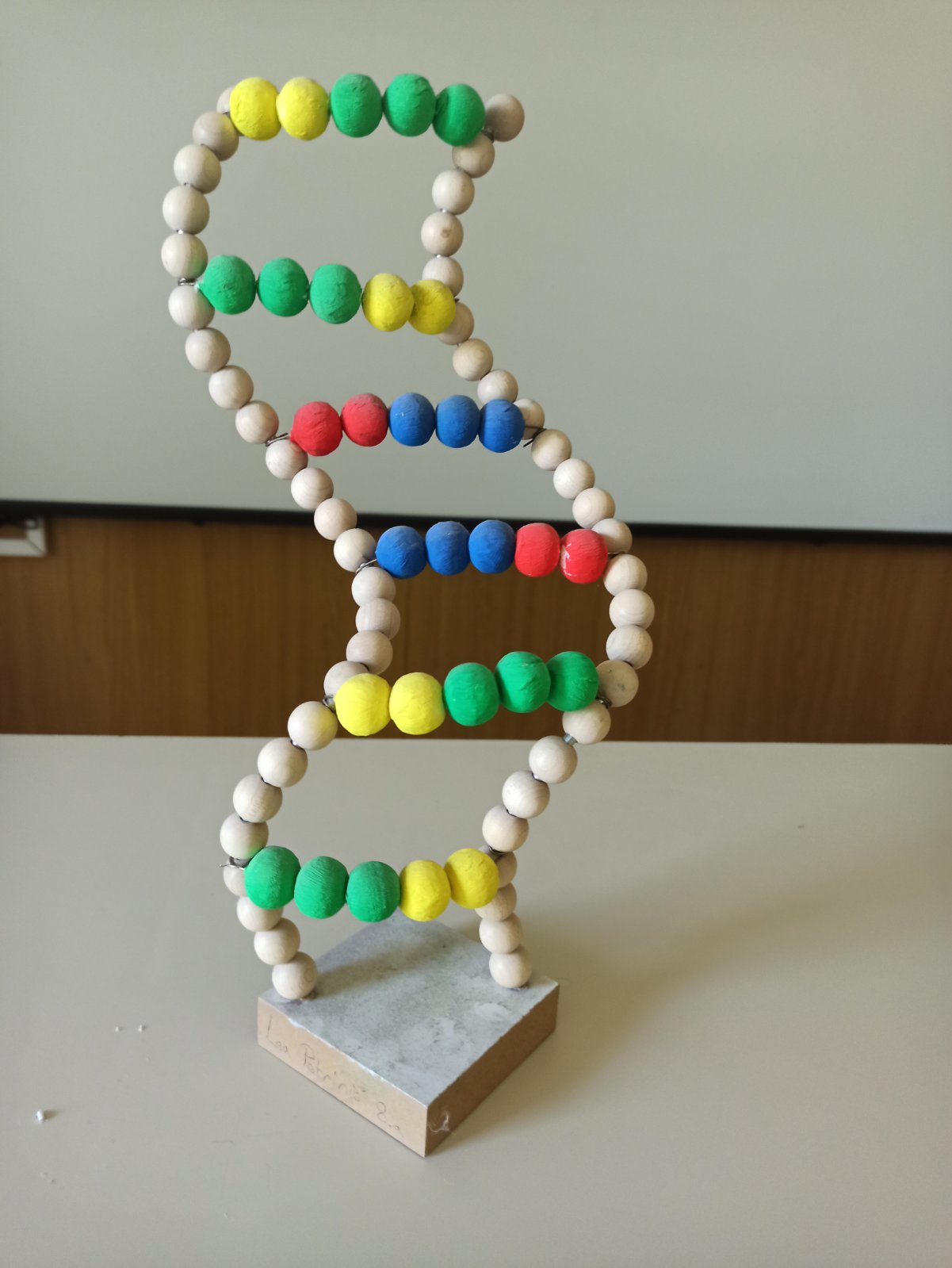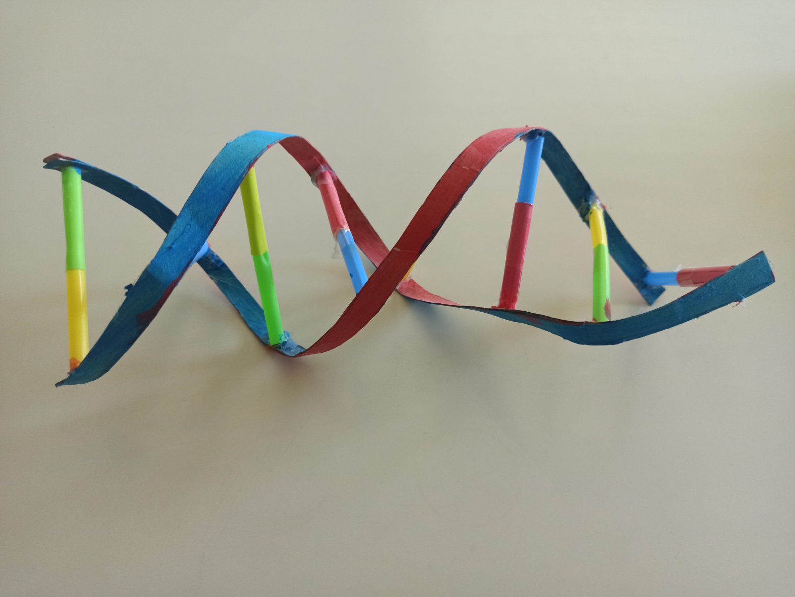 Vanjske linije koje učenici formiraju predstavljaju šećerno-fosfatnu okosnicu. Vizualni kontrast između stabilne vanjštine i informacijske unutrašnjosti jasno pokazuje način organizacije molekule.