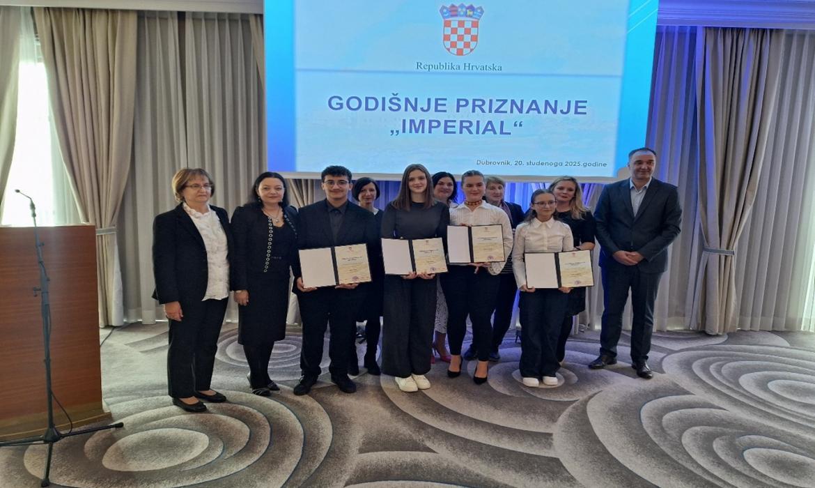 Na natječaj se može prijaviti jedan/jedna učenik/učenica, a upravo takva je i učenica naše škole (OŠ Hinka Juhna Podgorač) Ena Franjković koja je u pratnji svoje mentorice Kristine Marinković s ponosom primila svoje priznanje. Ena je bila jedna od četvoro nagrađenih učenika koji su primili Godišnje priznanje “Imperial”.