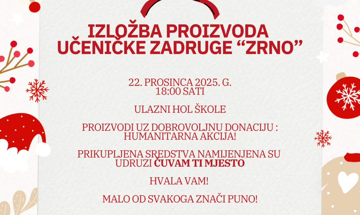 U vrijeme kada škole postaju mjesta pjesme, ukrasa i blagdanskog ozračja, najvrijednije su one priče u kojima se božićni duh ne zadržava samo na riječima, nego se pretače u konkretna djela dobrote. Upravo takav primjer ove je godine pružila Učenička zadruga „Zrno“ Osnovne škole „August Cesarec“ u Ivankovu, kroz humanitarnu akciju koja je započela jednostavno – božićnom radionicom – a završila nečim puno većim od same prodaje.