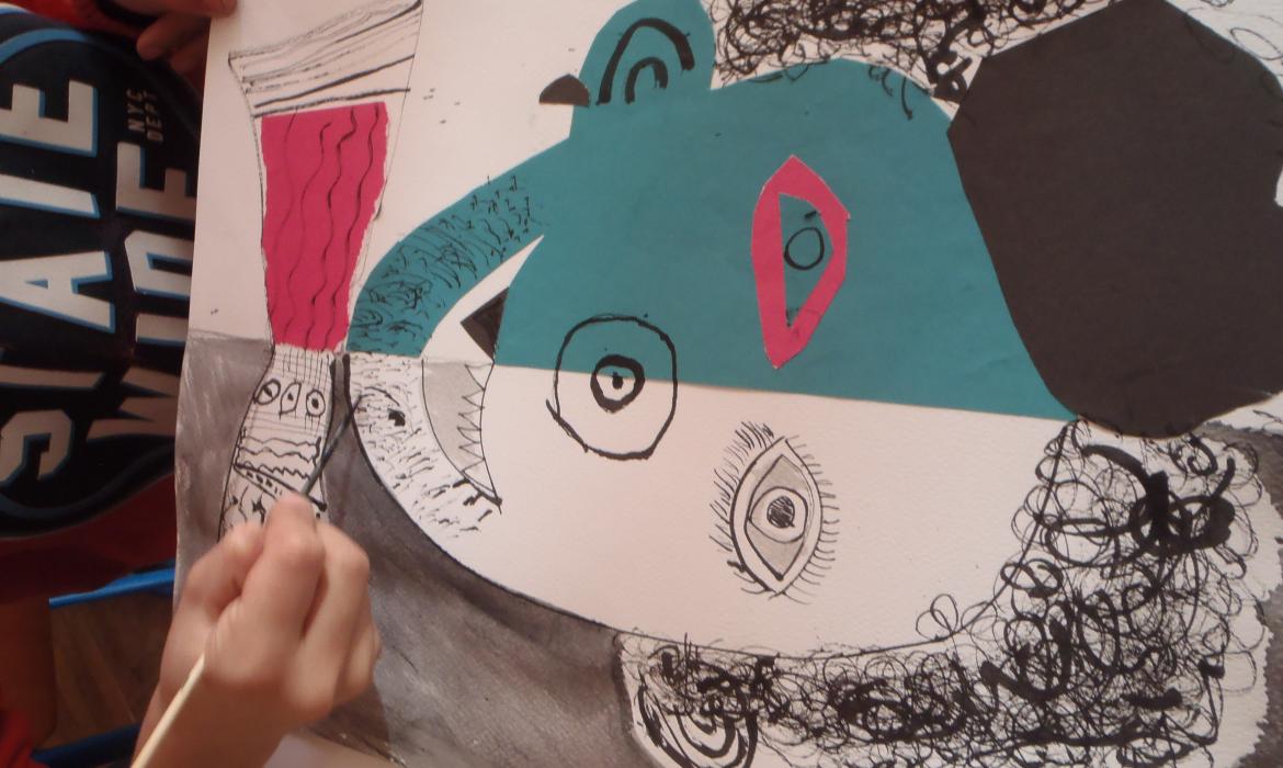 Na pola lista iz likovne mape radili su jednu polovinu lica maske u tehnici kolaža. Radi razigranosti kombinirali su i rezanje i trganje kolaž-papira. Druga polovina lica radila se u tehnici tuša i drvca. Mogla je biti i simetrična, ali učenici su istraživali i druge mogućnosti te dolazili do zanimljivih ideja i rješenja. Zatim su i dio koji je rađen u tehnici kolaža mogli ukrašavati linijama, mrljama, točkama, šarama dajući novu dimenziju i dekorativnost jednoličnom kolažu.