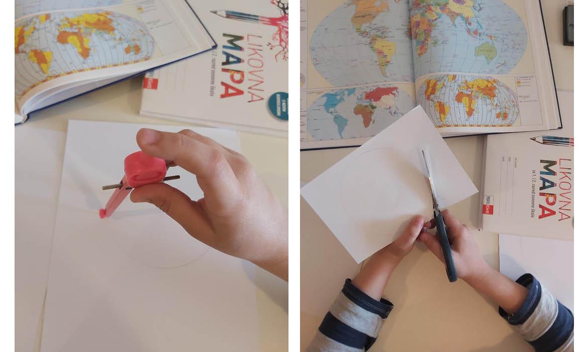 Olovkom je nacrtao četiri strane Zemljine kugle. Svaku stranu na jedan krug.