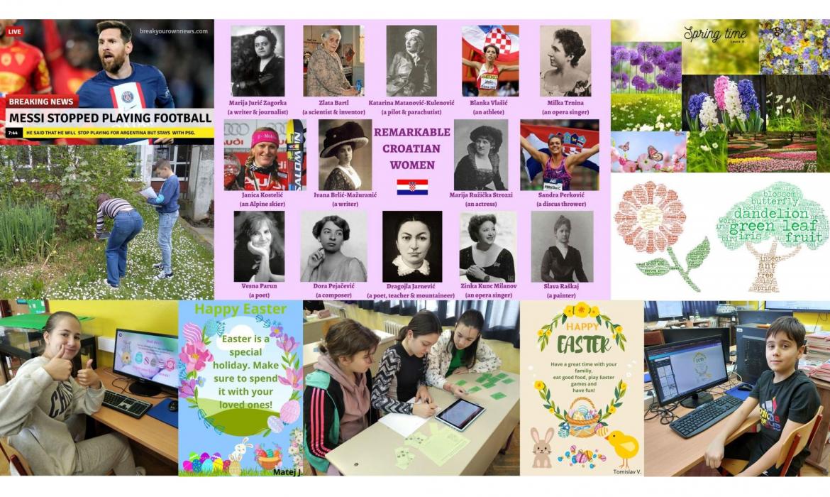 Povodom Međunarodnog dana žena, 8. ožujka, proučili smo biografije 14 najpoznatijih Hrvatica i njihov doprinos društvu te na temelju njihovih impresivnih djela i postignuća izradili e-knjigu naziva “Remarkable Croatian women” u Book Creatoru koju možete pročitati na ovoj poveznici https://bit.ly/RemarkableCroatianWomen. Za Dan sv. Patrika učenici su odradili webquest o legendi i životu navedenog sveca, kao i naučili nešto novo o običajima i kulturi Irske.