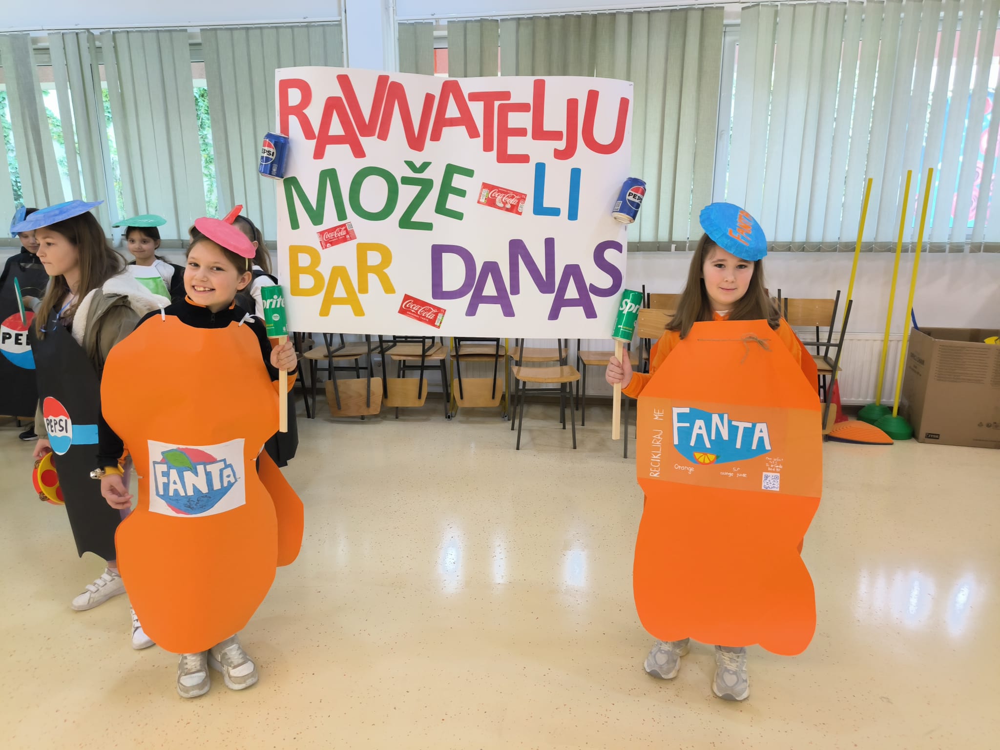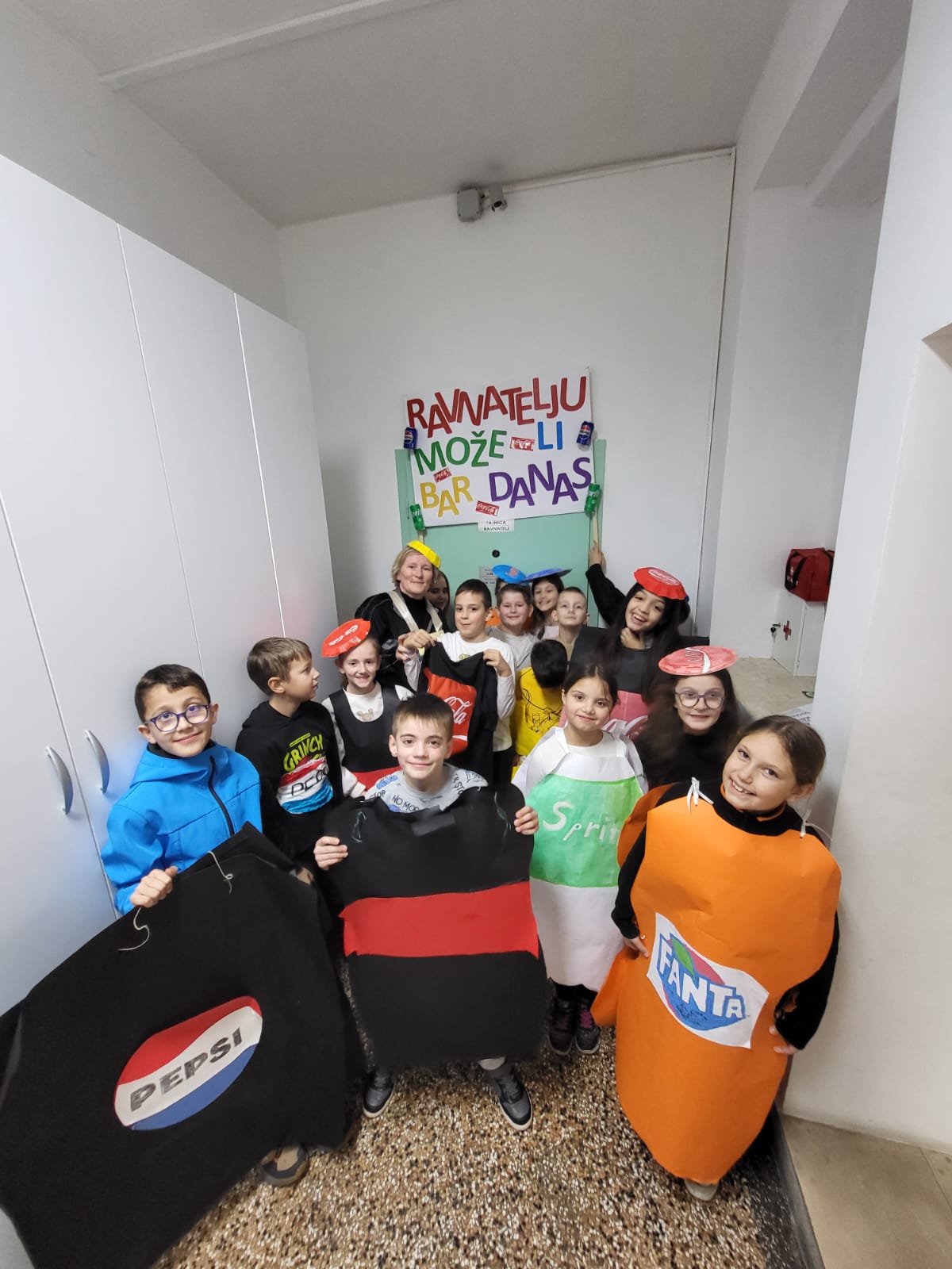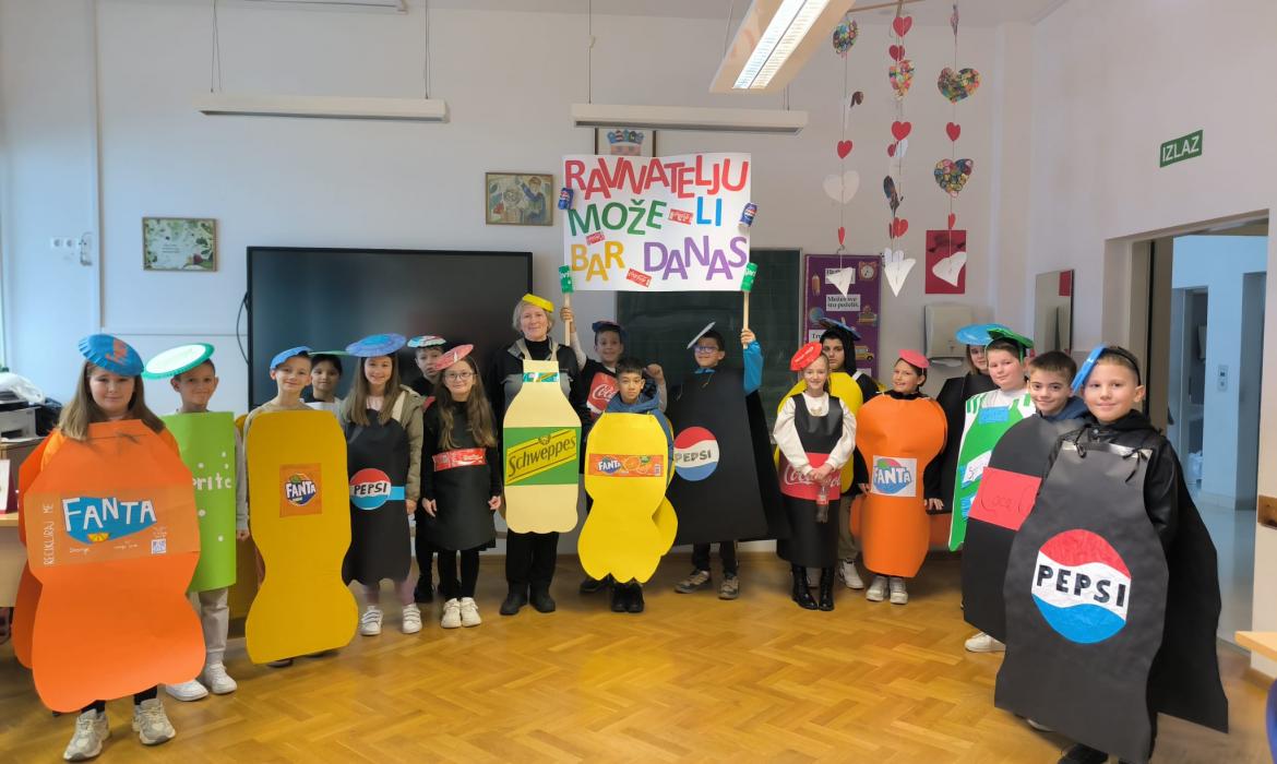 3.a razred OŠ Vrgorac, škole koja je prva zabranila gazirana pića, odlučio je ove godine u maškarama postati upravo ono što su izbacili iz hodnika – mjehurićava, šarena i glasna gazirana pića.