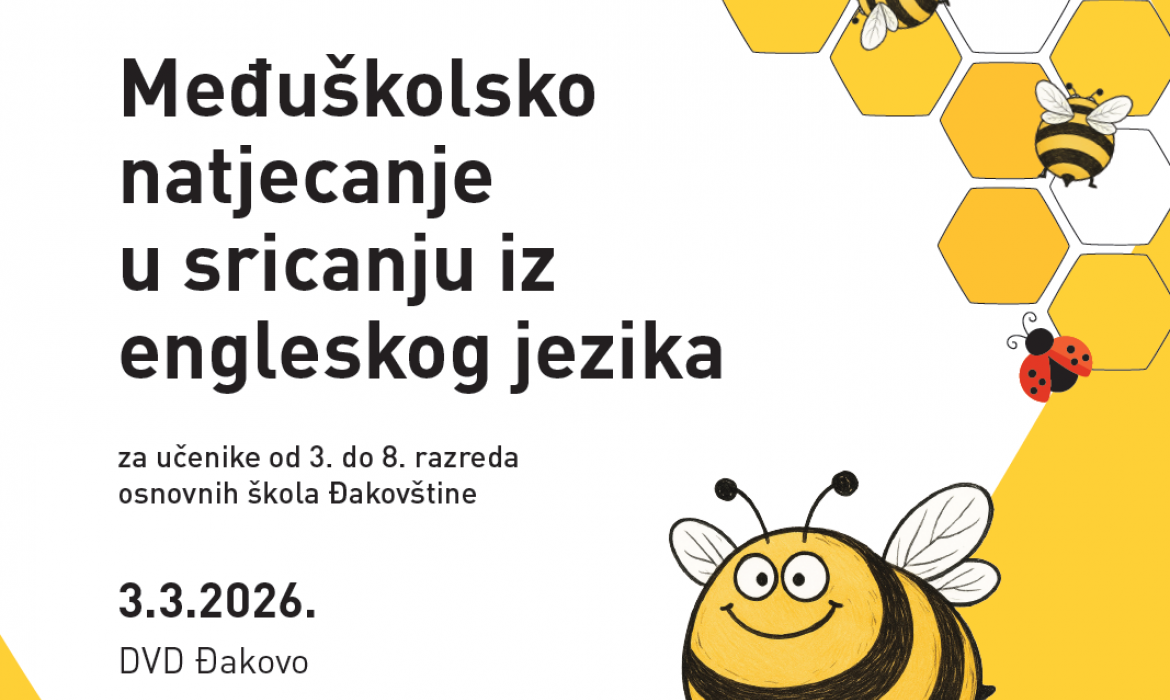 U prostoru DVD-a Đakovo 3. ožujka 2026. održano je prvo međuškolsko natjecanje u sricanju iz engleskog jezika Buzz’n’Spell, koje je okupilo učenike od 3. do 8. razreda osnovnih škola s područja Đakovštine.