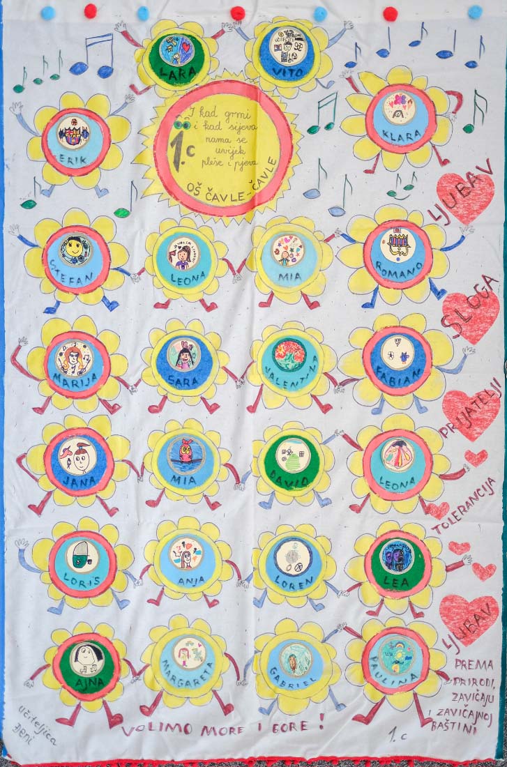 Tko sam ja? Tko smo mi kao razred? Što nam je važno? Po čemu smo posebni? Koje su naše vrijednosti? Kakva je poruka koju želimo poslati u svijet? U kakvom su odnosu naš razredni i zavičajni identitet? Oblikujući zajedničke razredne zastave, učenici šalju poruke prijateljstva, zajedništva, ljubavi, tolerancije, povezanosti, snage, ljepote… jer imaju što reći, jer žele da ih se čuje, jer im je važno!