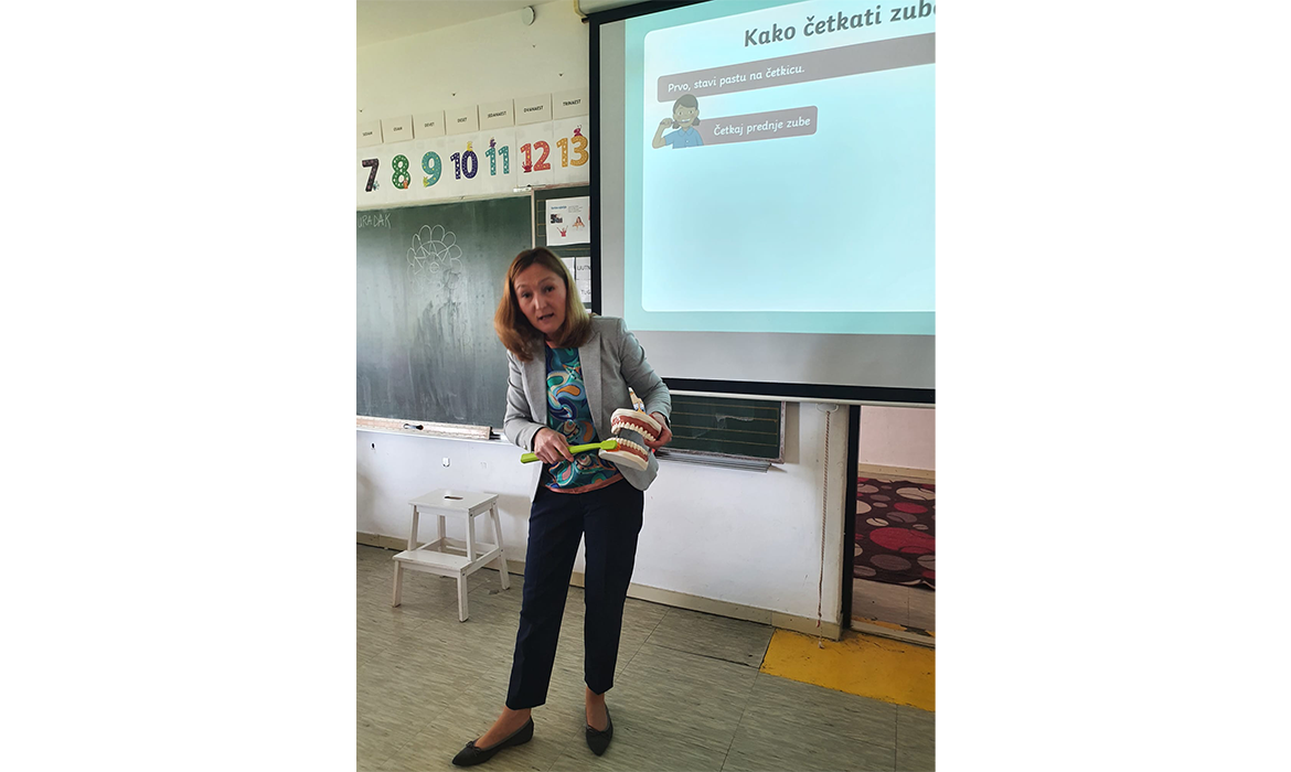 Roditelj prvašića, dr. sc. Kristina Goršeta dr. med. dent., redovita profesorica i znanstvena savjetnica na Stomatološkom fakultetu Sveučilišta u Zagrebu, održala je edukativno predavanje učenicima 1. a i 1. d razreda o postizanju dobrog oralnog zdravlja i njegovom čuvanju koje je održano pod sloganom svjetske kampanje za promociju oralnog zdravlja „Zdravi zubi za zdravo tijelo“. Naglasila je učenicima da je rano stjecanje navike redovitog i pravilnog održavanja higijene zuba i usta osnovni preduvjet za zdrave zube. Zubi su povezani s ostalim dijelovima tijela – srcem, mozgom, plućima te zdravlje zuba direktno utječe na zdravlje cijelog tijela.